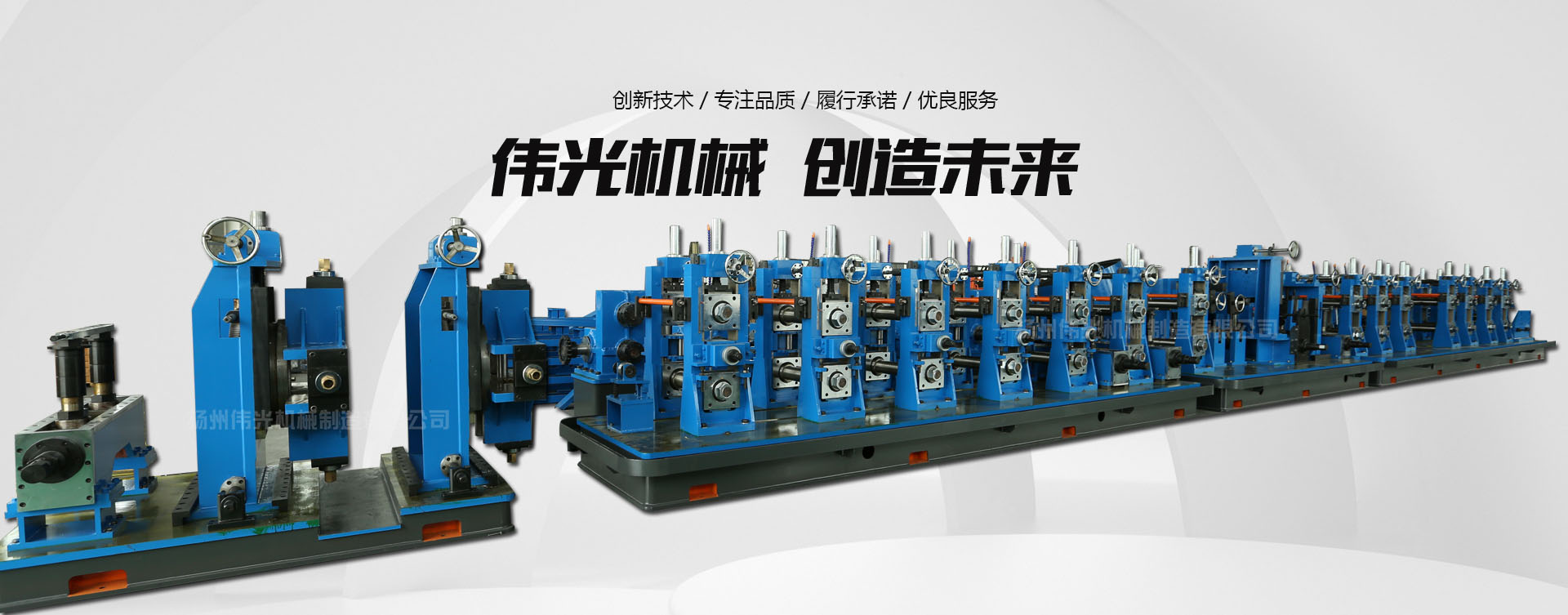 揚州偉光機械制造有限公司是生產(chǎn)精密鋼管、方管機組、邦迪管機組、焊管設備、焊管機組、鍍鋅管機組、冶金制管設備的專業(yè)廠家,廠區(qū)占地面積35000多m”,建有標準廠房10000多m2。目前公司設有焊接鋼管,冶金設備制造兩個車間,擁有2條具有國內(nèi)水平的焊管生產(chǎn)線,承接小口徑精密鋼管生產(chǎn),形成了精密焊管設備制造,旅游用品結(jié)構(gòu)管二大系列產(chǎn)品。